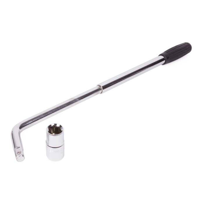 Deze telescopische wielmoersleutel is een praktisch hulpmiddel voor het los- en vastdraaien van wielmoeren. De lange arm van de hefboom zorgt voor een verhoogde overbrenging van de toegepaste kracht, waardoor wielmoeren gemakkelijk los te draaien zijn. De sleutel heeft een lengte van 330 - 520 mm en wordt geleverd inclusief dopsleutel van 17 en 19 mm met ½" opname.Gemaakt van chroom vanadium, biedt deze wielmoersleutel uitstekende duurzaamheid en weerstand tegen slijtage. Of je nu werkt aan auto's, vrachtwagens of andere voertuigen, deze wielmoersleutel biedt de kwaliteit en betrouwbaarheid die je nodig hebt. De telescopische functie zorgt voor flexibiliteit en gemak bij het werken.Belangrijke eigenschappen:- Lengte: 330 - 520 mm- Inclusief dopsleutel 17 en 19 mm met ½" opname- Materiaal: chroom vanadium- Duurzaam en slijtvast- Telescopische functie voor flexibiliteit