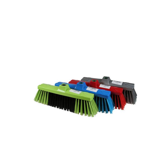 Deze bezem heeft zachte haren en ideaal voor gebruik binnen in huis. Hij heeft een universele schroefdraad waardoor hij makkelijk op een bezemsteel te bevestigen is.Kenmerken:- Kleuren: groen, rood, zilver- Afmeting: 35 x 9 cm (lxb)