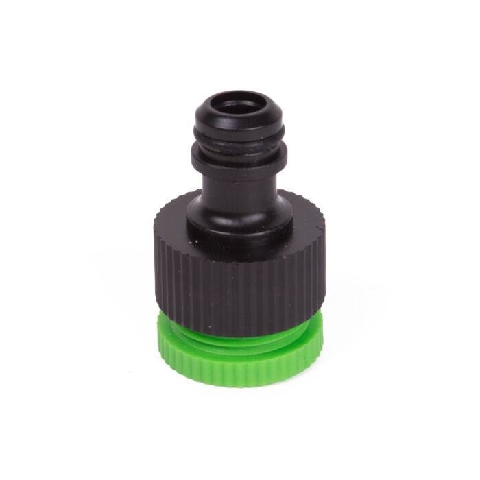 Kraanaansluiting 3/4 '' met verloopring naar 1/2 ''Kunststof kraanaansluiting voor het aansluiten van de buitenkraan met een slang.Met adapterring naar 1/2 inch voor oudere kranen.Voor buitenkranen met schroefdraad.Ø 21 mm. - G1 / 2Ø 26,5 mm. - G3 / 4