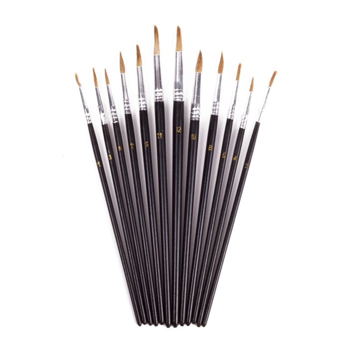• 12-delige ronde penselen set • Maten: variërend van 1 tot 12 mm • Geschikt voor verschillende soorten verf: aquarel, gouache, acryl en olieverf • Ook geschikt voor nagel kunst, het beschilderen van miniatuur poppetjes, auto’s, treintjes en modelbouw en schilderen op nummer