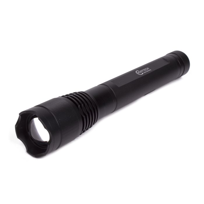 Hoge kwaliteit zaklamp gemaakt van stevig aluminium met 3 standen: Super fel, laag fel en strobe functie voor verschillende situaties Schokbestendig, compact en lichtgewicht Lengte: Ca. 23 cm, compact en gemakkelijk mee te nemen. Zoom: Maximaal 2000x zoom voor precisie verlichting. 40x feller: Maar liefst 40 keer feller dan een normale LED zaklamp. Exclusief batterijen: Werkt op 3 x C batterijen (niet inbegrepen). IP-waarde: IP44, wat betekent dat hij spatwaterdicht is