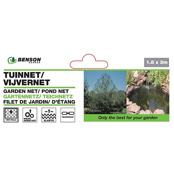 Tuinnet/ vijvernetAfmeting: 1.8 x 3 mMaaswijdte: 15 x 15 cmKleur: wit