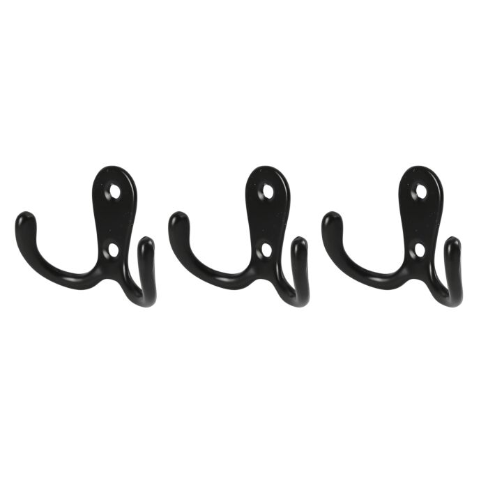 Set van 3 metalen dubbele kapstokhakenAfmetingen: 5,3 x 4 x 2,7 cmKleur: zwart