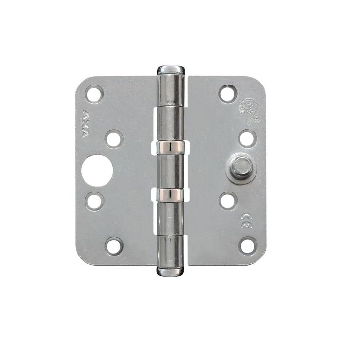 Lichtlopend, inbraakwerend, stalen AXA veiligheids kogellagerscharnier met een hoog draagvermogen en ronde hoeken.