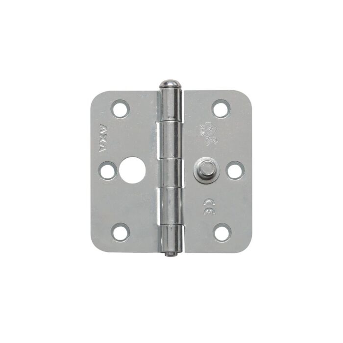 Ongelagerd, lichtlopend, inbraakwerend stalen AXA veiligheids scharnier met ronde hoeken.