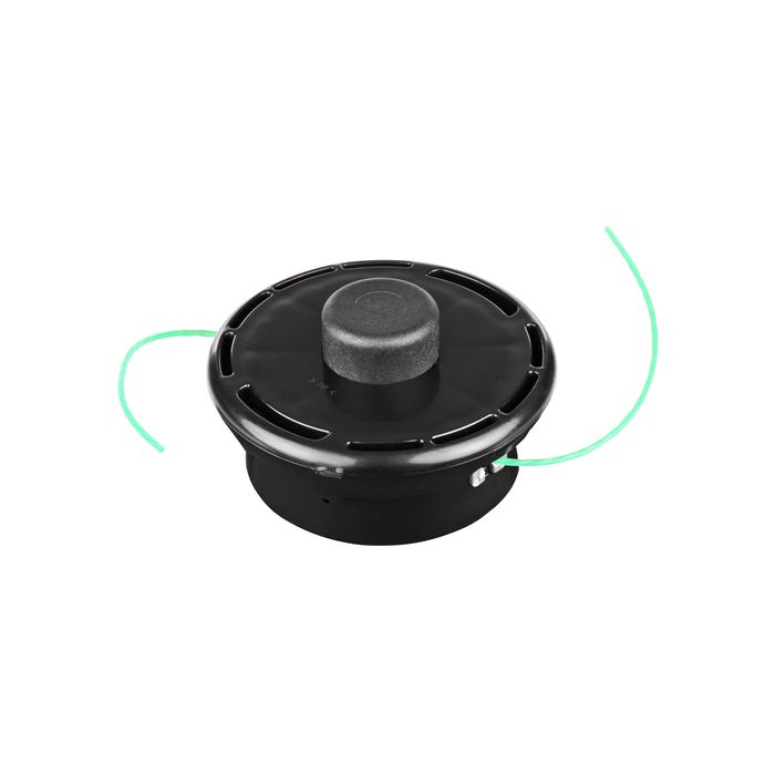 Makita Tap&Go draadkop. Druk tijdens het maaien met de knop van de draadkop op de grond en de draad wordt automatisch verlengd. Standaard gevuld met maaidraad 2,0 mm.