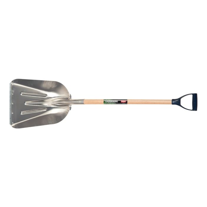 Aluminium graanschop met essen steel, ideaal voor ruimen van lichtere materialen en sneeuw