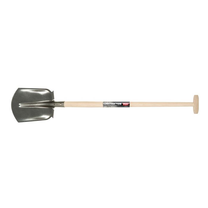 Porfessionele gepolijste drentse bats met essen T-steel en extra gehard blad, ideaal voor ruimen van zand en puin en voor grondwerken