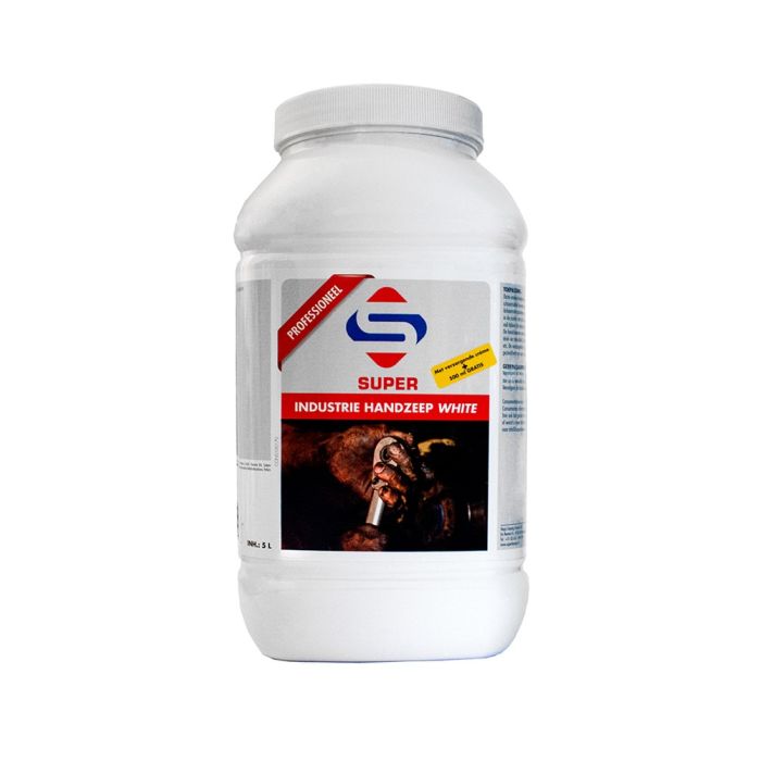 De Super Industrie Handzeep Wit is een verzorgende creme. Deze onderscheidende handcleanser bevat een uniek en krachtig schuurmiddel én een verzorgende crème. Onder invloed van de lichaamstemperatuur smelt de handcleanser snel op de handen en dringt diep in de poriën van de huid, waardoor zelfs het gemeenste en hardnekkigste vuil tijdens de normale handwasbeweging wordt losgemaakt en verwijderd. De handcleanser verwijdert veilig, snel en gemakkelijk olie, vet, teer, verf, druk- en stencilinkt, kleurstoffen, roet, grafiet, creosoot, aarde, grondvuil etc. De verzorgende crème in de handcleanser heeft een positief effect op de gezondheid van uw handen.