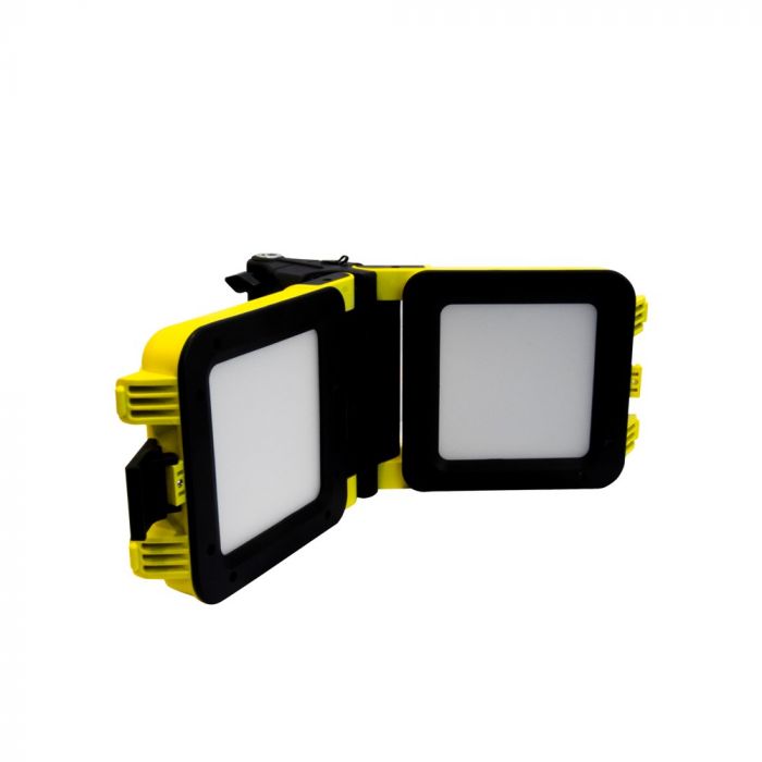 TAB87712 is een robuuste (IP65) oplaadbare werklamp met energiezuinige 20W SMD-LEDs. Te dragen en op te bergen als compact koffer. De lamp heeft 2 dimbare lichtpanelen met 3 lichtstanden en is tot 180° uitvouwbaar. In diverse posities te gebruiken. Ook plaatsbaar op driepoot (los te verkrijgen). Adapter 230V meegeleverd.